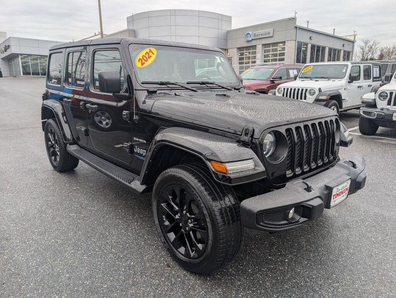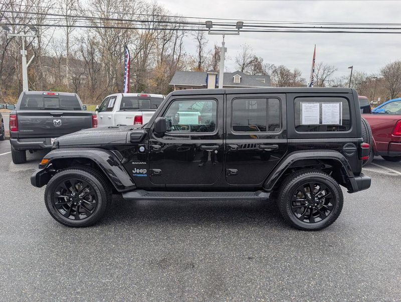 Black Clearcoat 2021 Jeep Wrangler Unlimited Sahara 4xe 4WD 8-Speed Automatic 2.0L I4 DOHC Lifetime Oil Changes, Lifetime Tire Rotations, Lifetime Engine Guarantee, Lifetime Car Washes, 2.0L I4 DOHC, 9 Speakers, Apple CarPlay/Android Auto, Automatic temperature control, Black 3-Piece Hard Top, Cold Weather Group, Freedom Panel Storage Bag, Front dual zone A/C, Heated Front Seats, Heated Steering Wheel, Leather Trimmed Seats w/Sahara Logo, No Soft Top, Quick Order Package 29P, Radio: Uconnect 4C Nav w/8.4'' Display, Rear Window Defroster, Rear Window Wiper/Washer, Remote Start System, Wheels: 20'' x 8'' Fully Painted Aluminum.