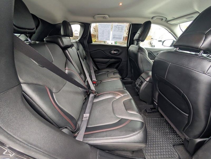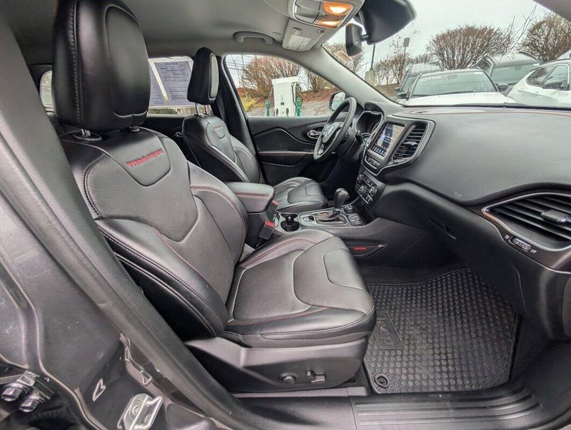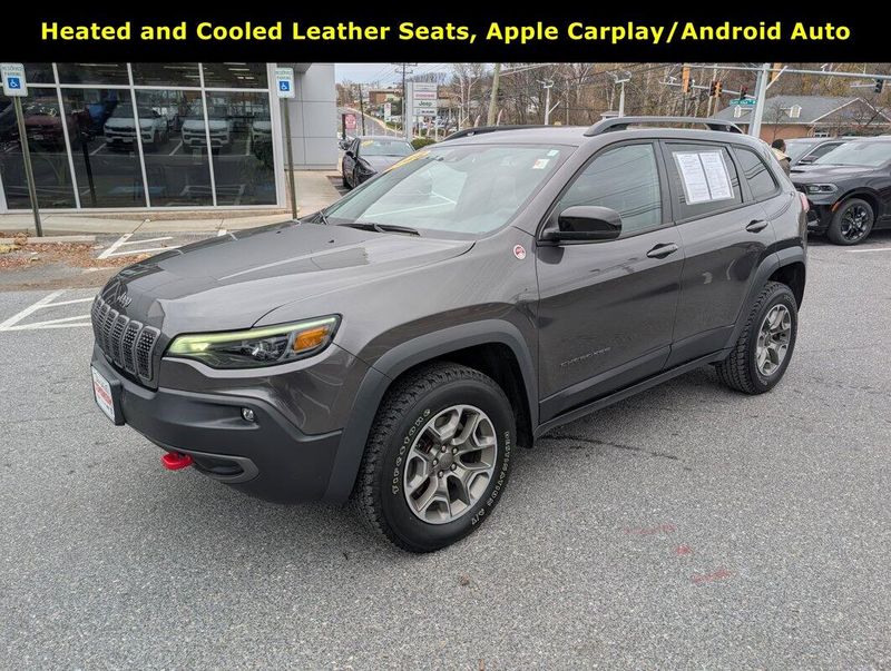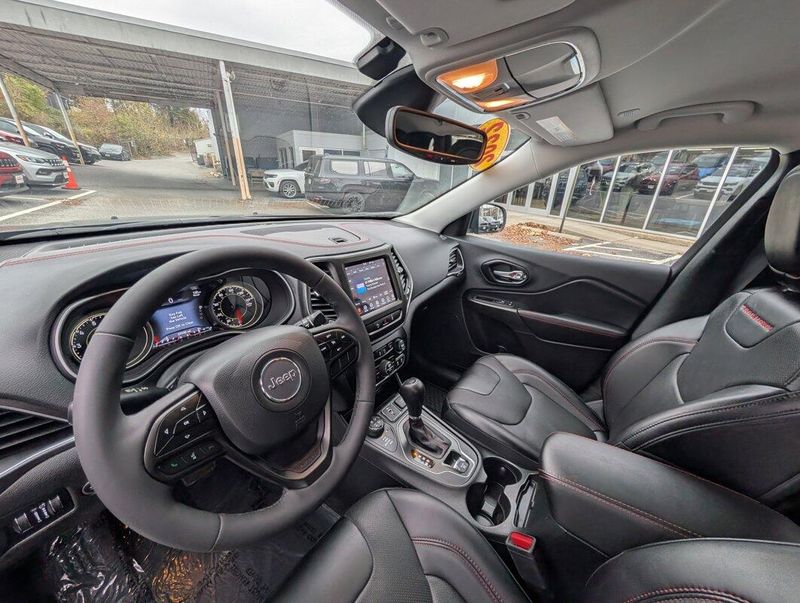 New Price! Granite Crystal Metallic Clearcoat 2022 Jeep Cherokee Trailhawk 4WD 9-Speed 948TE Automatic 3.2L V6 Lifetime Oil Changes, Lifetime Tire Rotations, Lifetime Engine Guarantee, Lifetime Car Washes, Auto-Dimming Rear-View Mirror, Comfort/Convenience Group, Exterior Mirrors w/Memory, Front fog lights, Fully automatic headlights, Hands-Free Power Liftgate, Panic alarm, Power 8-Way Adjustable Front Passenger Seat, Power Passenger Lumbar Adjust, Premium Leather Package, Premium Leather Trimmed Bucket Seats, Quick Order Package 27E, Radio: Uconnect 4 w/8.4 Display, Radio/Driver Seat/Exterior Mirrors Memory, Remote Start, Security Alarm, Speed control, Ventilated Front Seats.THE DON WHITE DIFFERENCE:LIFE TIME OIL AND FILTER CHANGES, CAR WASHES, TIRE ROTATIONS, ENGINE POLICY, and, MULTI-POINT INSPECTIONS *see dealer for details.