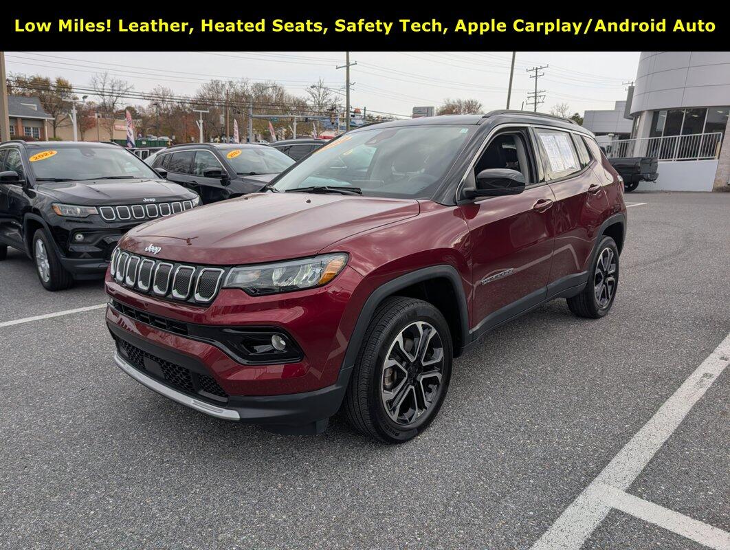New Price! Velvet Red Pearlcoat 2022 Jeep Compass Limited 4WD 9-Speed 948TE Automatic 2.4L I4 Lifetime Oil Changes, Lifetime Tire Rotations, Lifetime Engine Guarantee, Lifetime Car Washes, 4WD, 10.1 Touchscreen Display, Auto-dimming Rear-View mirror, Automatic temperature control, Front dual zone A/C, Heated front seats, Heated steering wheel, ParkView Rear Back-Up Camera, Quick Order Package 2GG, Radio: Uconnect 5 w/10.1 Display, Wheels: 18 x 7 Painted Diamond Cut Aluminum.Odometer is 14206 miles below market average! 22/30 City/Highway MPGTHE DON WHITE DIFFERENCE:LIFE TIME OIL AND FILTER CHANGES, CAR WASHES, TIRE ROTATIONS, ENGINE POLICY, and, MULTI-POINT INSPECTIONS *see dealer for details.