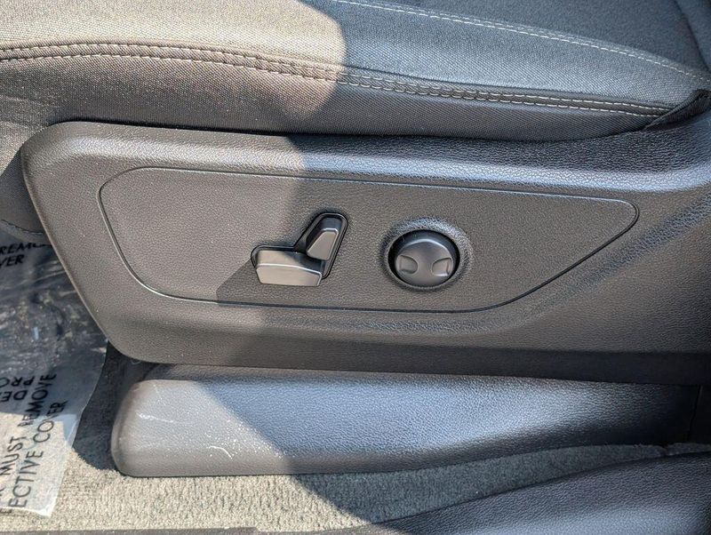 Inside, the spacious cabin is outfitted with Black Deluxe Cloth Bucket Seats, offering both comfort and style. The Power 8-Way Driver Seat and Power 2-Way Driver Lumbar Adjust ensure a personalized driving experience, while the Rear Dome Lamp with On/Off Switch and Sun Visors with Illuminated Vanity Mirrors add to the overall refinement.