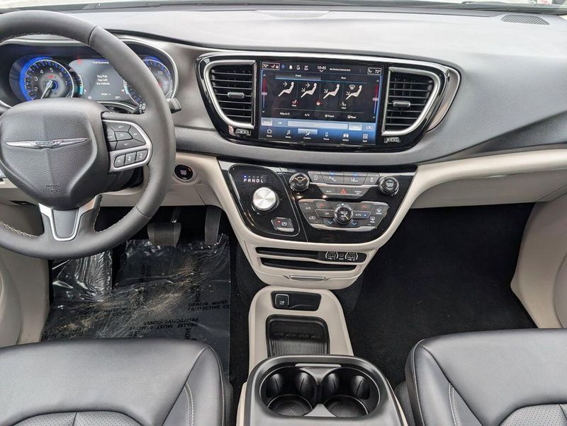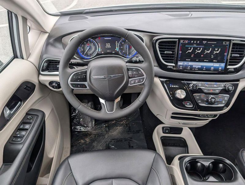 Step inside the Pacifica Touring L and be enveloped in a world of modern amenities and thoughtful design. The spacious cabin boasts premium Caprice Leatherette Bucket Seats, a heated steering wheel, and a stunning 10.1'' Touchscreen Display with seamless Apple CarPlay and Android Auto integration. The ParkView Rear Back-Up Camera and a host of advanced safety features, including Electronic Stability Control and Brake Assist, provide added peace of mind on every journey.