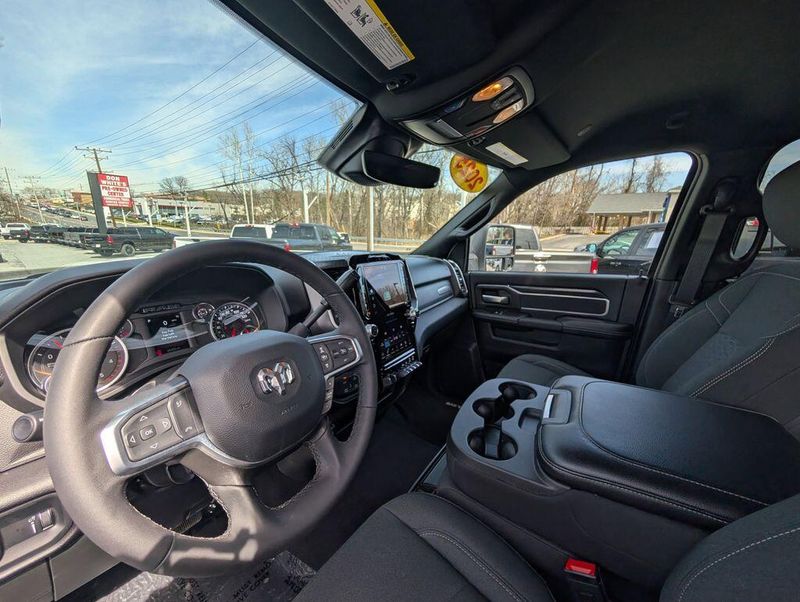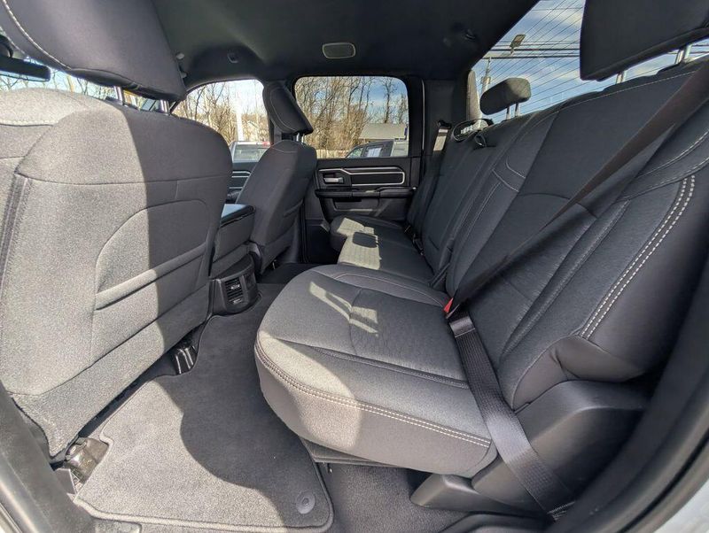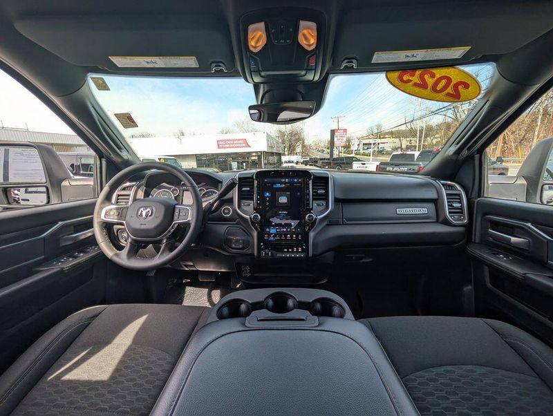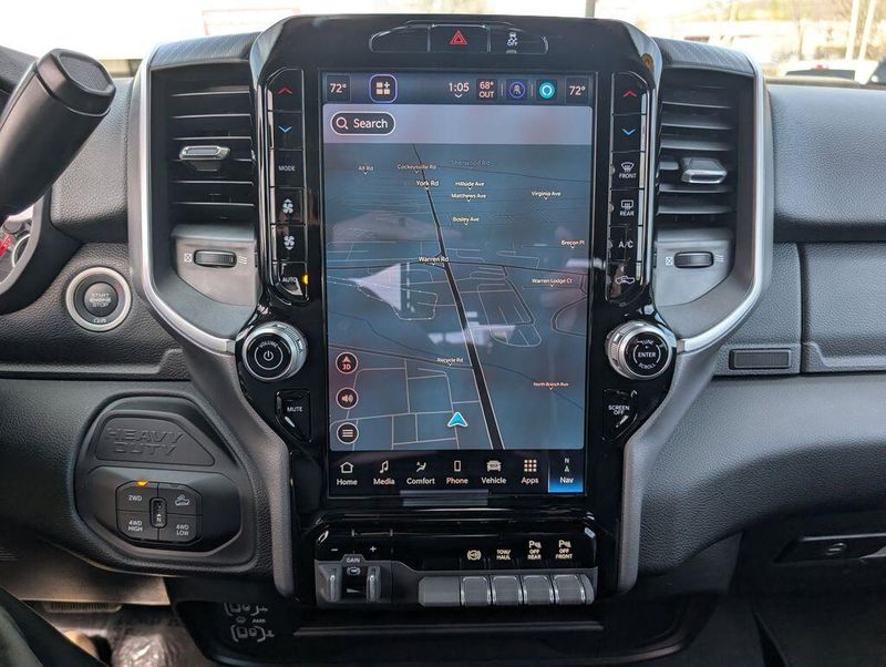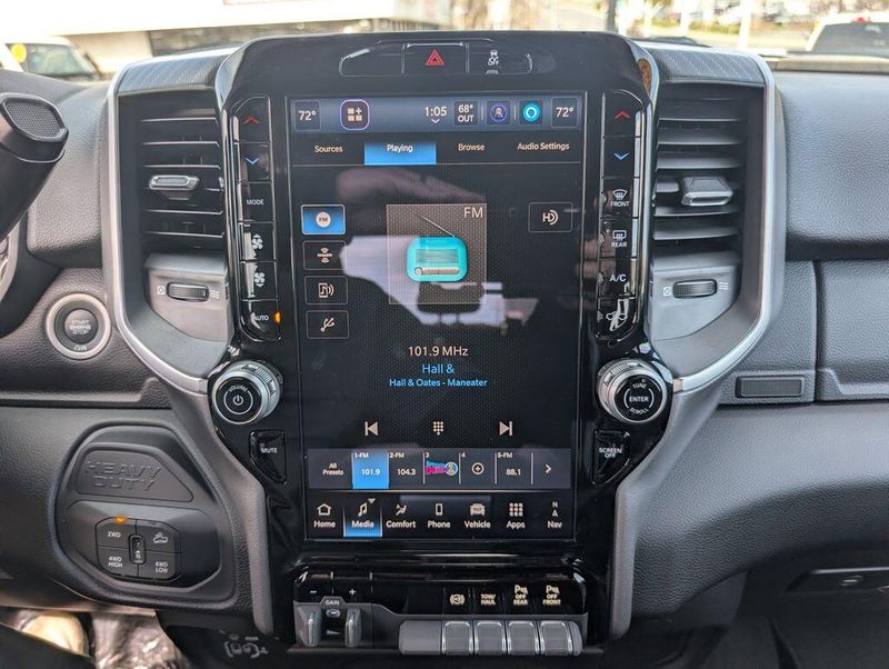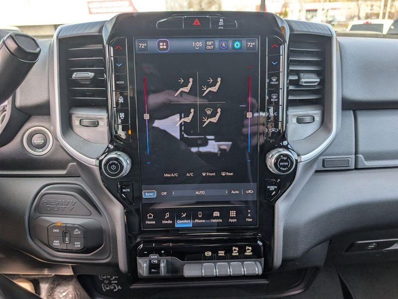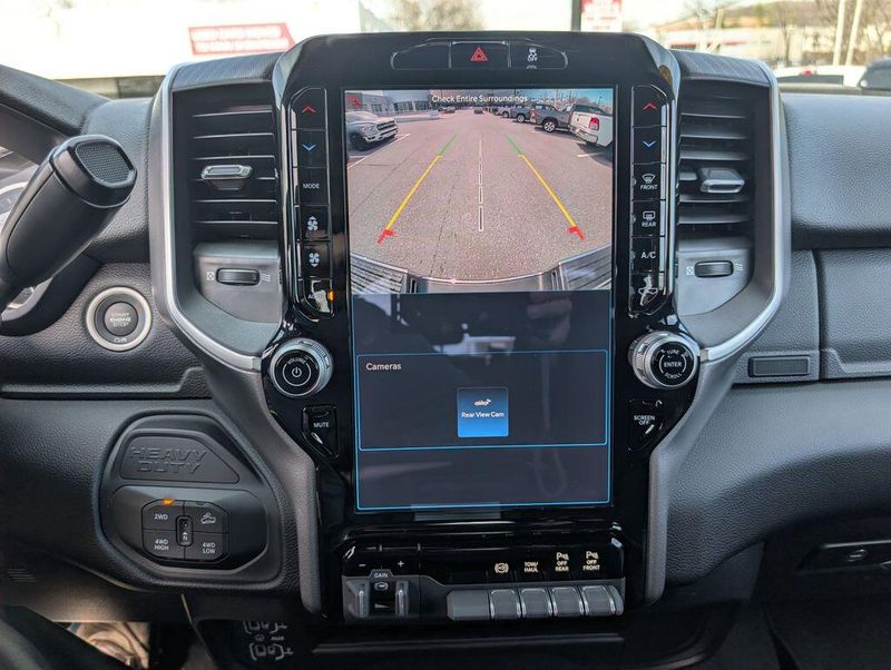 Step inside and experience the exceptional comfort and convenience of this Ram 2500. The premium cloth 40/20/40 split bench seat provides ample room and support, while the power-adjustable driver's seat ensures a perfect fit. The 12-inch touchscreen display with Uconnect 5 navigation keeps you connected and in control, with features like Apple CarPlay, Android Auto, and Alexa integration. The Off-Road Package adds rugged capability, with tires, skid plates, and performance-tuned shocks to conquer any terrain.